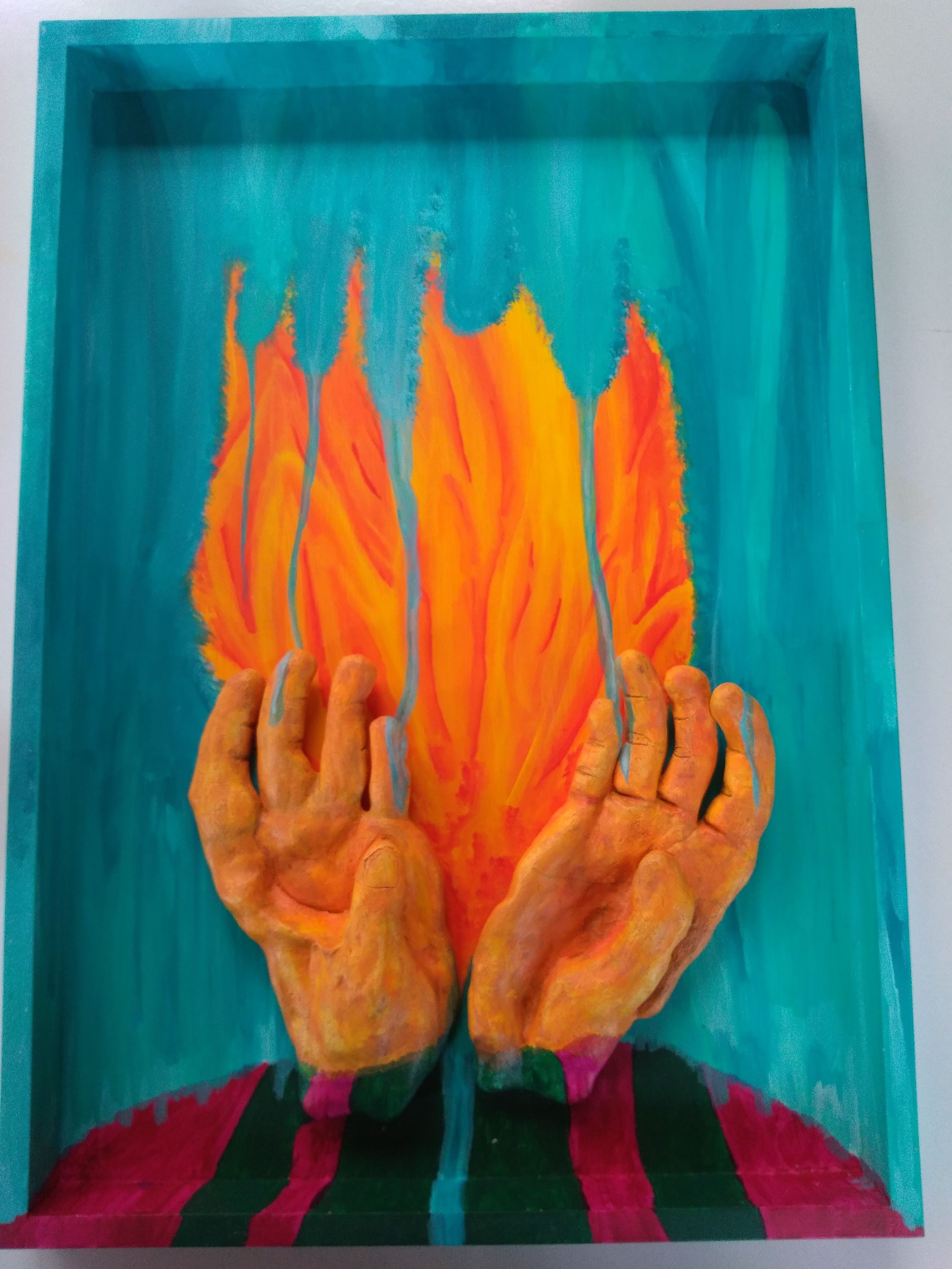 Conocerme, ha hecho que deje de forzarme a amar como otros, conocerme ha hecho que descubra la semilla de la creatividad para hacer pequeñas obras de arte que otros puedan regalar, conocerme me ha dado libertad… La diferencia en esta aventura de exploración, es que desde el inicio he preguntado a Dios, y con el Espíritu Santo como guía explorador, he descubierto lo que estaba en el cuarto de objetos perdidos, olvidados y sin descubrir. En la imagen de arriba, fue necesario identificar la forma mis dedos, motivos de burla por mucho tiempo de «personas cercanas», pero saber que me ayudan a moldear mejor la arcilla, que son mis manos, que así son únicas y especiales, me llevo a aceptarlas, cuidarlas y amarlas intentar; «elegir los colores» fue un reto. Pero desde ese momento, respeto y cuido más mis manos, porque son herramientas primordiales para crear, escribir, comer (algo que me gusta mucho hacer). Conocernos es una aventura que dura toda la vida.
